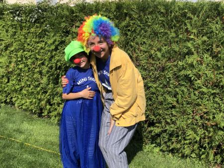 Mit Pommes und Hotdog zum Mittagessen ging es am Nachmittag gestärkt weiter. Die Verkleidungskiste war sehr gefragt und brachte uns alle zum Lachen, nicht nur die Clowns. Gemeinsam eine Fahne zu malen ist eine Herausforderung. Wer kann gut Zeichnen und wer hat die kreativste Idee? Gemeinsam entstand ein kleines Kunstwerk. Um 16 Uhr wurde das olympische Feuer dann wieder gelöscht und alle machten sich auf den Heimweg.